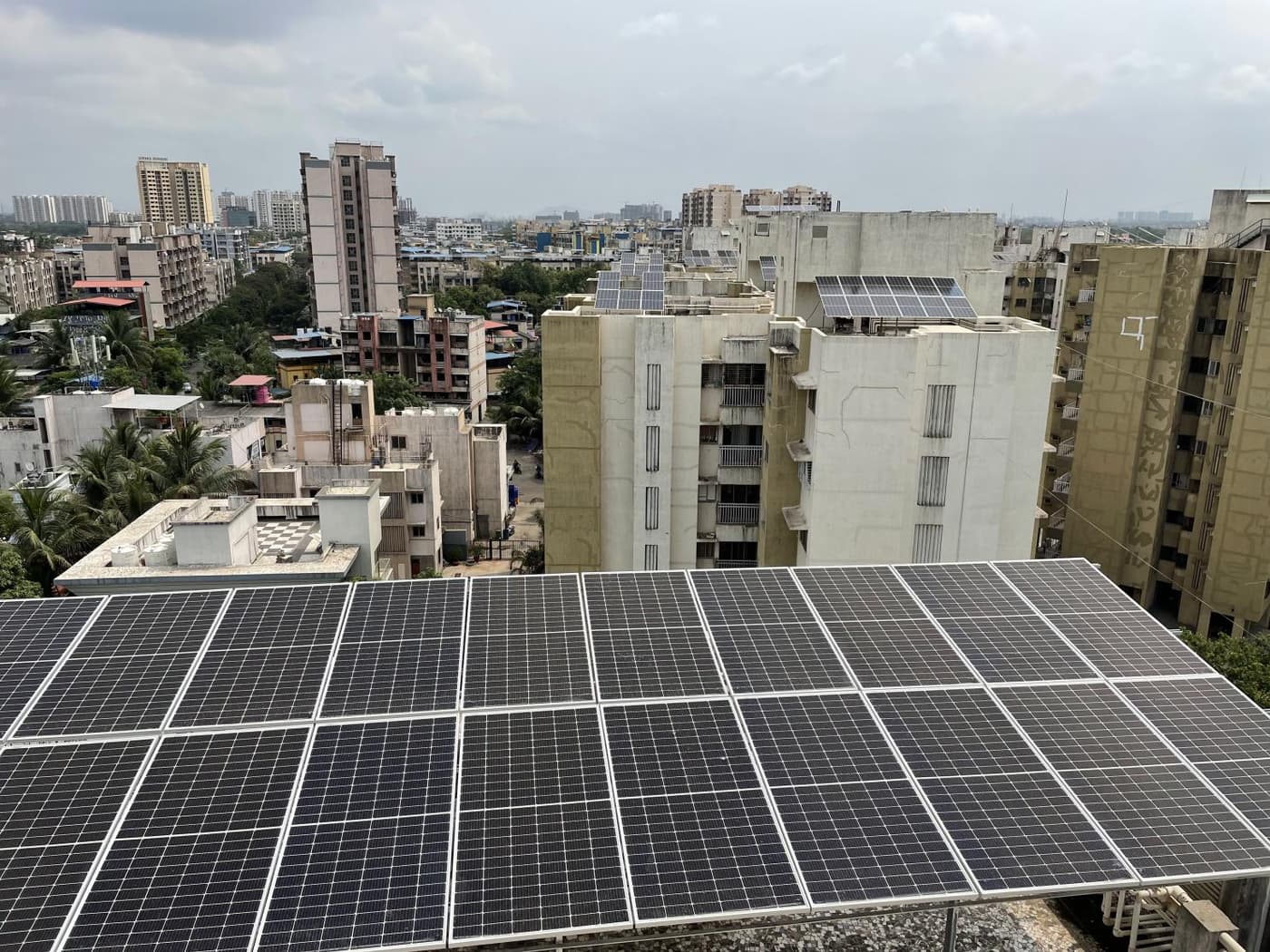 Morgana CHS is part of Casa Rio Gold in Palawa City, a residential cluster by the Lodha in Dombvli, Bombay. The rooftops here get ample sunlight with no other structure blocking path for sunlight, making it an ideal spot to host these panels.